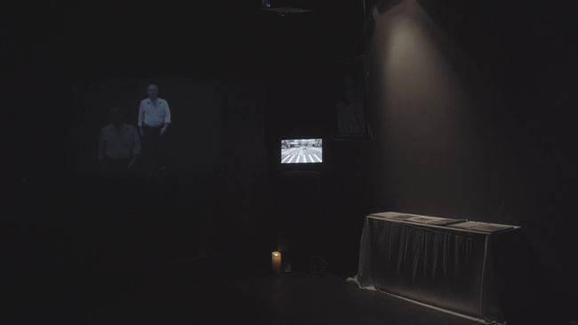 Mixed media, including two single-channel videos.